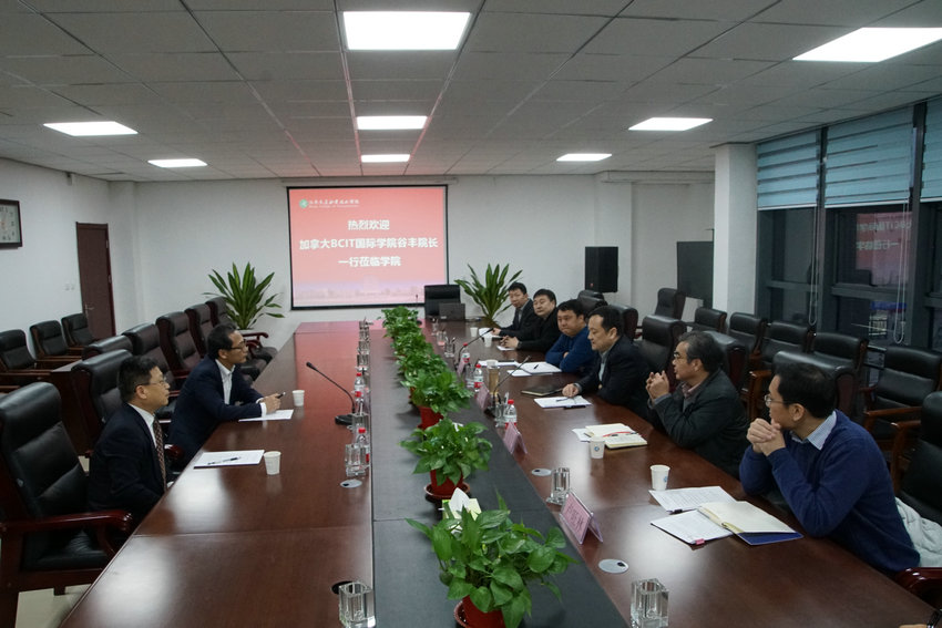 12月13日下午,学院与加拿大不列颠哥伦比亚省理工学院(BCIT)交流合作座谈会在明德楼第三会议室举行。加拿大BCIT国际学院院长谷丰先生、技术培训中心主任杰夫先生与学院院长李强、副院长夏连学、卢旺林、李博等出席座谈会,相关部门、院(系)负责同志参加座谈会。会议由夏连学副院长主持。