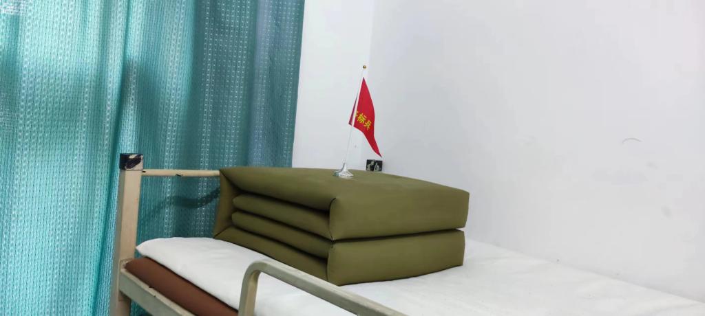 走进宿舍,映入眼帘的棱角分明的军被,洁白平整的床铺,叠放整齐的内务柜,置身军营的秩序感铺面而来。跟训队长谢晓博每天组织检查评比内务,穿梭在各个房间,用尺子丈量着被子的长宽高,在本子上记录着军士新生的内务情况,为达标的床铺放置鲜艳的内务卫生小旗,将标准化培养、精细化管理贯彻始终。