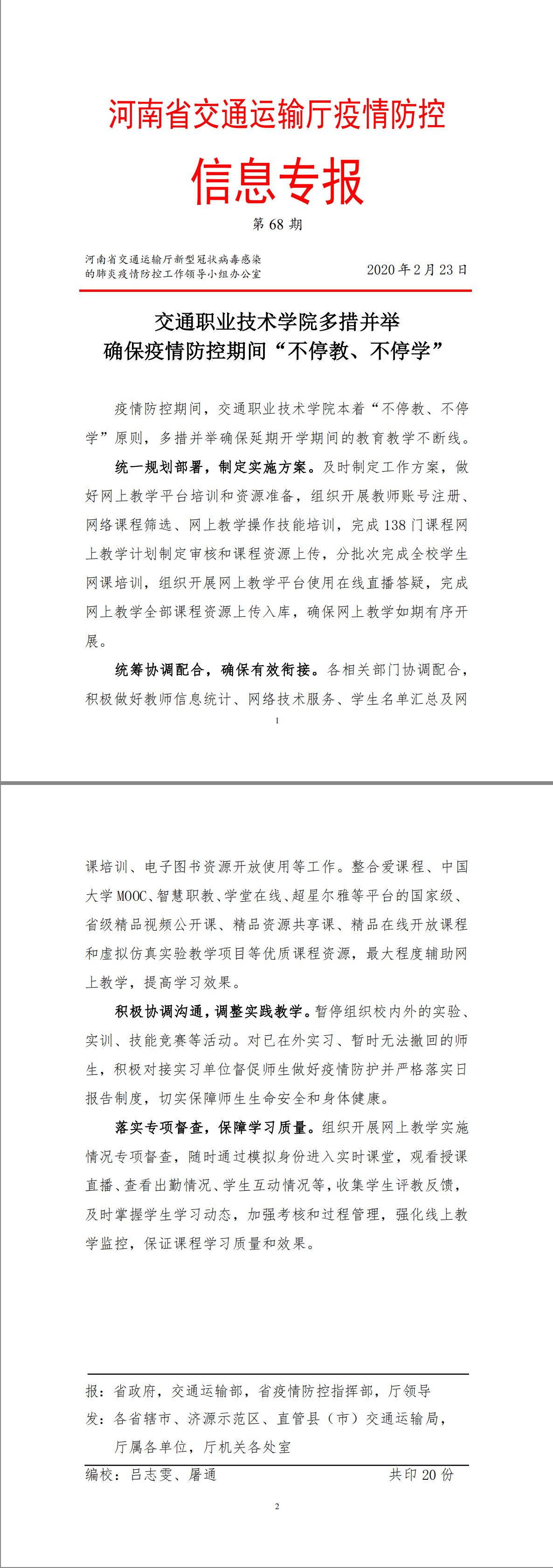 河南省交通运输厅:交通职业技术学院多措并举 确保疫情防控期间“不停教、不停学”