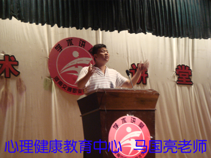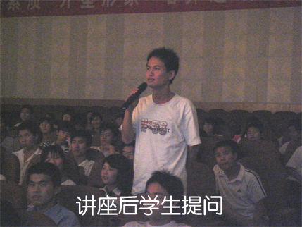 马老师就四川地震过程中不同人群面对地震的心理状态展开演讲,通过幻灯片演示、特殊实例介绍、以及如何面对突发应急事件等,详细的向广大同学诠释什么是地震、地震中的情绪反映、地震过程中心理危机干预的方法、技巧。讲座气氛活跃、内容丰富、 语言生动自然,台下报以热烈掌声。