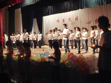 本场晚会旨在为奥运加油,为四川灾区人民祈福,同时为即将离去的莘莘学子留下一缕美好的回忆,带去真挚的祝福,让他们怀揣梦想去开拓明天。