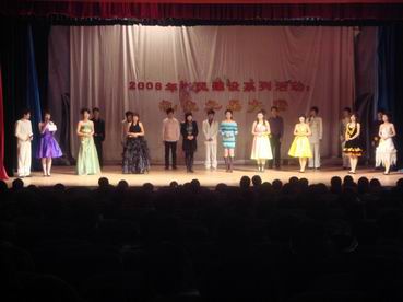 12月17日下午3点由院学生工作处主办,人文社科系承办的2008学风建设系列活动之“我为你心动”礼仪之星大赛在艺术中心报告厅隆重举行。副院长王杰亭,院长助理、学生工作处处长毛新年,院团委熊瑛书记,人文社科系党总支书记刘之梅,学生工作处副处长张震等领导莅临观看了演出。