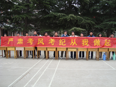 随着本学期期末考试的临近,道桥工程系团总支向全系学生发出了“诚信考试”的倡议,并于12月23―24日组织道桥系南、北两院学生代表,进行“诚信考试”签名仪式。