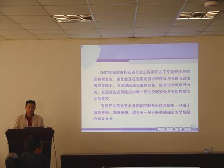 来自道桥工程系的何晨、汽车工程系的冯顺利、经济管理系的郑文辉、交通信息工程系的宋全友四位老师从专业设置和专业培养目标、课程体系和结构、师资队伍建设、专业改革等方面分别做了汽车运用技术、道路桥梁工程技术、会计电算化、交通安全与智能控制专业剖析ppt演示。