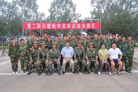 第二届天琥班学员是8月2日来到鹤壁天择公司的,在公司的精心组织、安排下,由鹤壁市第二武警总队担任对该届学员的军事训练工作。武警总队的战士们制订了详细周全的训练方案,从思想、生活、体能训练等各个方面都提出了严格的标准,并在训练中付诸了实施。通过为期二十天的军事训练,学员们的思想接受了新的洗礼,生活作风更加严谨,意志更加坚强,身体也更加健康了,第二届天琥班学员军事训练圆满结束。