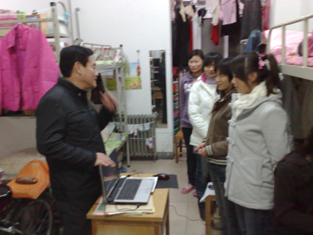 11月24日晚,李亚杰院长亲自带领汽车工程系朱学军书记、学生工作处张震副处长、总务处李颖超副处长,以及其他值班人员深入教学楼、宿舍、医务所和学生隔离室了解甲型H1N1流感防控期间学生的学习、生活情况。