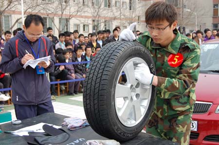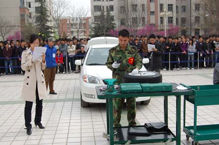 大赛于下午2:30准时开始,各参赛选手精神饱满、动作娴熟、配合默契,在规定时间内完成了竞赛项目。比赛现场气氛热烈,选手们娴熟规范的操作技能征服了在场的观众,迎来了阵阵掌声。通过各位评委公平、认真的评比,最后汽车运用技术08303班杨长柱、高小梅获得冠军,其他参赛选手分别获得二等奖、三等奖和优秀奖。