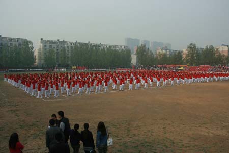 运动会开幕式由夏连学副院长主持。夏连学副院长介绍完主席台就坐的领导后,由450名学生表演的广播操和由60名学生表演的艺术体操,拉开了运动会的序幕。