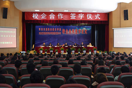 4月27日,我院与河南交通科学技术研究院有限公司校企合作暨图书捐赠签约仪式在学院艺术中心举行,省交通运输厅副厅长李和平,副厅长霍金花,厅副巡视员、学院党委书记马健出席仪式。签字仪式由厅科技处宋华东处长主持。李亚杰院长和胡霞光董事长分别致词。 李亚杰院长对省交通运输厅领导、省交通科学技术研究院有限公司的大力支持表示感谢。他介绍了学院的交通职业教育特色和校企合作情况,表达了今后与交通科学技术研究院有限公司携手并肩、共同开创交通教育、科研创新美好明天的衷心祝愿。 胡霞光董事长发言中说:这次校企合作是省交通科学技术研究院带头响应厅党组关于大力发展交通职业教育,深入开展校企合作号召的具体体现,也是积极参与推动交通行业技术发展的具体体现。希望通过两院的合作,为河南交通事业培养出更多的人才,为河南交通事业的发展作出更大的贡献。 双方签约合作的项目一是互聘客座教授与客座研究员――交院聘请科研院首批七名教授级高工担任客座教授,科研院聘请交院八名教授担任客座研究员;二是科研院接收交院毕业生顶岗实习;三是科研院与交院在交院新校区共建共用重点实验检测中心;四是科研院向交院捐赠价值四十万元的图书设备用于教学科研。