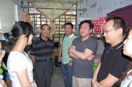 李院长到学生宿舍,与学生就学习、生活及“星级宿舍”建设等方面问题与学生亲切交谈,对“星级宿舍”建设情况进行详细了解。