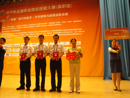 我院8名学生代表河南省参加2010年全国职业院校技能大赛高职组和中职组汽车类所有赛项的比赛,分别荣获高职组汽车类团体三等奖、中职组汽车类涂漆二等奖和钣金二等奖的优异成绩。