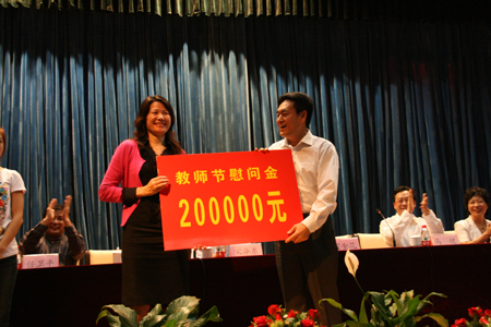 霍金花副厅长代表省交通运输厅向学院发放了教师节慰问金,并向学院全体教职员工们致以节日的祝贺。霍副厅长回顾并充分肯定了学院一年来取得的成绩,认为成绩的取得应归结为三个“好”:一是好的领导班子,学院新的领导班子经过半年多的工作实践,已形成了团结向上、谋事发展的领导核心,是一个团结有力,干事创业的领导班子,是一个可以让厅党组放心、可以让全院师生信任、能够带领学院取得一个又一个成绩的领导班子;二是好的交院中层领导干部。学院中层领导干部尽职尽责,无私奉献,是学院发展的中流砥柱;三是好的师生队伍,优秀的交院师生是一切成绩取得的根本力量。