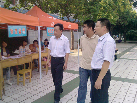 在新生报到现场,学院领导详细了解了新生报到和接待过程中的基本情况,对遇到的问题,即刻现场办公予以解决,并对接待人员热情、周到的服务表示充分地肯定,对接待人员付出的辛勤劳动表示亲切地的问候。