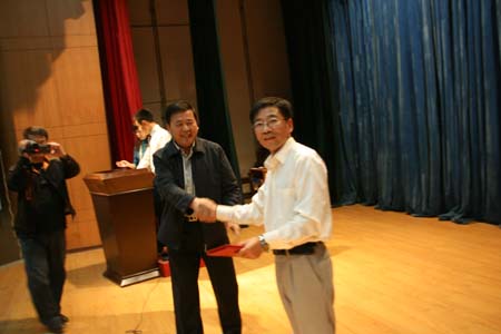 学院工会主席贺绍华、副院长华志坚、解福泉、毛新年、张瑞春观看了比赛,并为在“读经典、诵美文”诵读比赛和“迎国庆 学三平精神 做三平教师”演讲比赛中获奖的选手进行了颁奖。