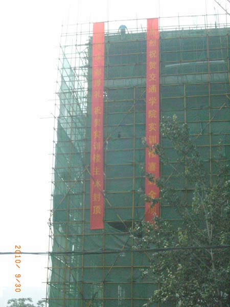 9月30日上午,我院新建实训大楼主体工程顺利封顶。新建实验实训大楼于今年7月26日正式开工建设,在学院领导的大力支持下,仅用2个月时间即顺利实现主体工程封顶。目前,砌体、装修、门窗及安装工程按计划已做好进场施工准备,预计11月底各分部分项工程全部完工,可进行初步验收,比合同工期提前1个月。届时学院各系部的实验室设备及工器具采购安装工作可及早跟进,为示范性院校建设验收工作争取时间。