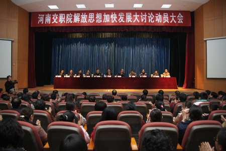 会上,院党委书记徐强同志就如何贯彻落实董厅长的讲话精神,开展好解放思想大讨论活动;如何以科学发展观为统领,进一步加快学院发展;如何用“以人为本”的理念营造学院发展的良好氛围做了题为《抢抓机遇 乘势而上 实现交院新的跨越式发展》的动员讲话。徐书记在讲话中深入浅出的阐述了学习贯彻省委省政府的决策部署和董永安厅长讲话精神,围绕学院升格后的新形势、新情况、新要求展开大讨论的重要性和必要性;从政治、待遇、经济、社会地位四个方面,分析了学院机构规格的提升为学院带来的变化和发展机遇;明确指出,学院党委一定要保持工作平稳过渡,在和谐发展中带好班子,建好队伍,用好人才,学院一定扎实开展好思想解放大讨论活动,查摆问题,研究对策,促进学院又好又快发展;徐书记希望全院教职工通过此次解放思想大讨论活动,更加深刻地领会董永安厅长的讲话精神,增强机遇意识,树立发展意识,积极主动融入学院新一轮发展大潮,进一步增进对学院升格重大意义的认识,统一思想、明确目标、抢抓机遇、乘势而上,为学院在新时期的又好又快发展做出贡献。