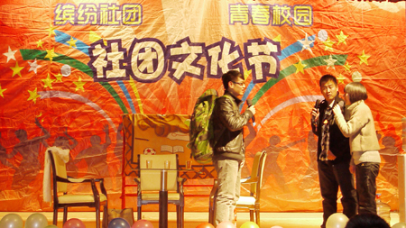 各社团精心准备的文艺演出为本届社团文化节画上了圆满的句号。气势磅礴的《精忠报国》、极富感染力的手语表演《星月神话》、优美的民族舞《碧波孔雀》、诙谐幽默的相声《夜行记》、小品《送水工》,更有舞蹈协会指导老师王蕾饱含深情的歌曲《万岁中国》将晚会推向高潮。