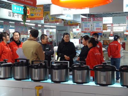 12月11日,我院经济管理系主任李建丽老师、副主任闫洪林老师、连锁经营教研室主任魏继华老师利用双休日到国美电器德化街店、陇海店看望了08级订单班部分学生,并和门店经理就学生的日常表现、实习培养进行了交流。