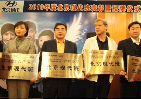 北京现代汽车有限公司于2008年启动了校企合作办学项目,在与其合作的职业院校成立“北京现代班”,为北京现代各地区的4S店订单培养汽车维修人才。目前,北京现代已与全国21所职业院校开展了合作办学,我院是河南省唯一一家与北京现代开展合作办学的院校。