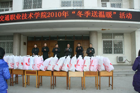 近日,寒潮来袭,气温骤降,中原地区进入了严冬。学院领导时刻惦记着家庭经济困难学生的学习和生活,为帮助他们度过寒冷的冬天,实现资助工作的多元化和立体化,我院于2010年12月29日开展了冬季送温暖活动。学院毛新年副院长、工会贺邵华主席、学生工作处张震副处长以及各系有关负责人参加了此次活动。此次活动为400名贫困学生发放了过冬棉被。