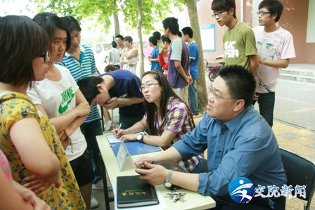 (毕业生咨询活动现场沈老师在耐心为毕业生解答疑问)