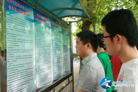 (毕业生在认真观看就业宣传栏内容)