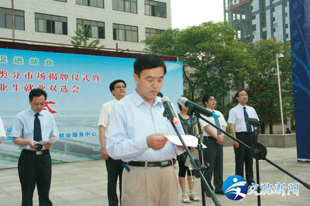 省教育厅学生处吴建中副处长首先宣读了《关于同意设立“河南省毕业生就业市场交通类分市场”》的批复(豫毕指〔2011〕45号)文件,并与徐强书记一起为河南省毕业生就业市场交通类分市场揭牌。河南建筑职业技术学院杨明喜副院长、郑州之星奔驰汽车服务股份有限公司卢绍豹总经理分别代表与会院校和企业表示祝贺。