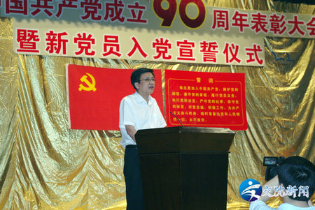 6月28日下午,我院庆祝中国共产党成立90周年表彰大会暨新党员入党宣誓仪式在艺术中心报告厅隆重召开。学院领导徐强、李亚杰、张浩、夏连学、夏青、贺绍华、解福泉、毛新年等一起出席了大会。全院400余名教职工、学生党员、入党积极分子代表共同参加了大会。大会由学院副院长毛新年主持。