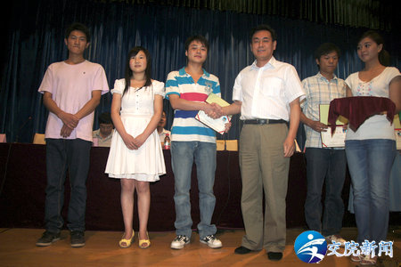 下午3点的艺术中心报告厅灯火辉煌、气氛热烈,2011届毕业生毕业典礼在庄严的国歌声中开始。学院党委书记徐强首先宣读了省教育厅及学院关于2011届省级和院级优秀毕业生的表彰决定,今年我院共有3671名毕业生,其中106名同学获得“河南省优秀应届大中专毕业生”称号,188名同学被评为“河南交通职业技术学院优秀毕业生”。宣读表彰决定后,学院领导向优秀毕业生代表颁发获奖证书,省级优秀毕业生代表胡鹏飞、孙海强、李芳,院级优秀毕业生代表王欣欣、刘庆、黄伟科等同学分别走上主席台领奖并合影留念。
