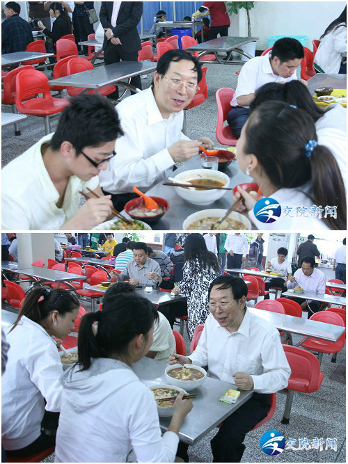 最后,孙廷喜厅长一行到学院餐厅了解食品卫生、饭菜质量等情况,并同我院同学一起共进午餐、聊天交谈,深入了解学生学习生活各个方面的情况。