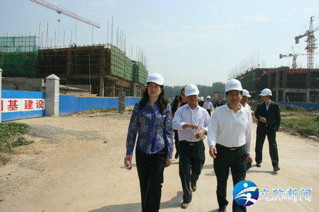 在了解到新校区建设开工半年多以来监管到位、计划周全、进展顺利等详细情况后,霍厅长欣喜地说,“看到新校区建设有条不紊,一座座高楼拔地而起,我眼前一亮!规划蓝图和建设场景使我很振奋,很受鼓舞,很是高兴!”