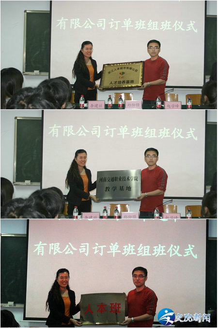 9月28日晚、河南交通职业技术学院经济管理系和浙江人本超市有限公司举行了“人本班”组班仪式。人本超市有限公司人力资源部郑仰锋经理、王建礼经理、葛谦主管、我院经济管理系李建丽主任、赵学峰书记、闫洪林和程晓栋副主任等参加了此次组班活动。
