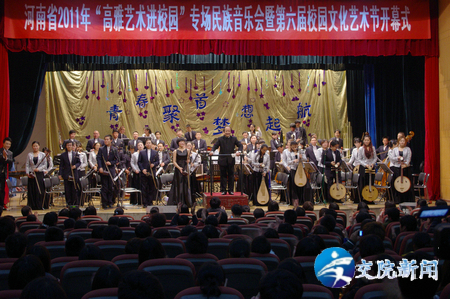 11月9日晚7点,河南省2011年“高雅艺术进校园”活动走进我院,河南民族乐团在艺术中心为全院师生带来了一场民乐的视听设宴,毛新年副院长和全院500多名师生共同观看了演出。本次活动同时标志着学院第六届校园文化艺术节隆重开幕。