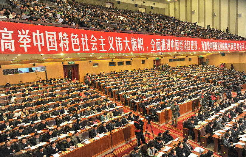 1月8日上午,河南省第十一届人民代表大会第五次会议在省人民会堂隆重开幕。 上午9时,大会主席团常务主席卢展工宣布:河南省第十一届人民代表大会共有代表951名,出席开幕大会的代表902人,符合法定人数,现在大会正式开幕。 与会人员全体起立,会堂内响起雄壮的国歌声。 在热烈的掌声中,省长郭庚茂作《政府工作报告》。 图为会议现场 。