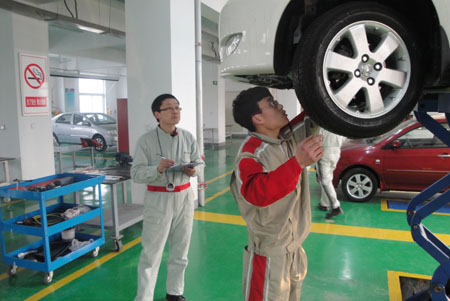 这是我院新建汽车实训大楼投入使用后首次承担认证考核工作,丰田公司特意安排樊旭民老师前来督考,同时也对我院丰田项目新实训场地进行视察。此次考核由我院张俊停、张杰飞、贾广辉、张红老师担任考官,对经过经销店店内培训的员工进行理论、基本技能、保养操作的考核,考核合格者才能得到丰田技术员资格证书。督考完整个考核过程樊老师代表丰田公司对我院的支持表示感谢,对考官的业务素质给予了极高的评价和肯定。同时对新的丰田实训场地很满意,为以后更深入的合作建立了更好的硬件平台。