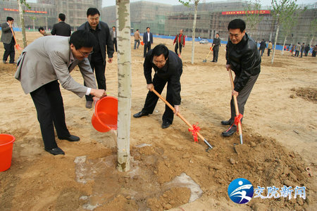 孙廷喜厅长、高委副厅长、霍金花副厅长与学院徐强书记一同种下树苗