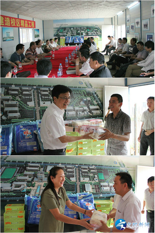 5月14日,院党委书记徐强、副书记夏青,带领院机关有关部门负责人,深入学院新校区建设一线,慰问工程建设人员,并向他们发放了慰问品。