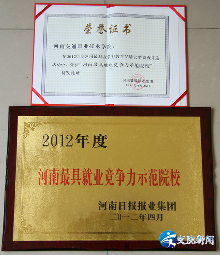 好就业、高质量就业并非上述院系的个例,在学院下属的公路学院,汽车学院,物流学院,商务旅游系,交通信息工程系等系部院,广大同学成功就业,高品质就业的事例比比皆是,这已成为学院特色和核心竞争力。由于学院交通特色鲜明、行业优势明显、校企合作广泛、就业工作突出,河南省教育厅在该院设立了“河南省交通类毕业生就业市场”。与此同时,在河南日报报业集团举办的2012年度河南最具竞争力教育品牌大型调查评选活动中,河南交通职业技术学院获评“河南最具就业竞争力示范院校”。通过一系列引名企进校园,融学生入社会活动的实施,学院的订单培养质量得到持续提升。学院还分别在多家企业建立128个校外教学和实习基地,与200多家企业建立了长期人才合作关系,充分保证了实训教学、学生顶岗实习及最终高质量就业的需要。