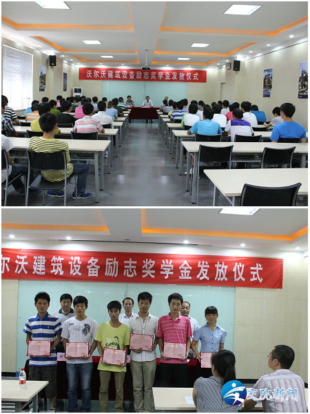在颁奖仪式上,王钢伟先生向获得沃尔沃建筑设备励志奖学金的12名学生表示了祝贺,并鼓励所有的同学们努力学习,把握人生;学生代表表示在以后的工作中将秉承沃尔沃 “品质、安全和环保” 的核心价值观,尽自己最大的努力为沃尔沃的客户提供优质的服务;最后王钢伟先生和宋院长、宋书记共同为获奖同学颁发了获奖证书和奖金。