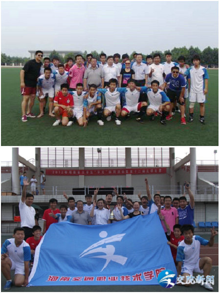7月8日-15日,2012年河南省大学生“华光”体育活动第十二届足球比赛在河南师范大学圆满结束。我院足球代表队顽强拼搏、沉着应战,以小组第一的战绩闯进8强,最终以3胜1平1负的成绩脱颖而出,喜获比赛亚军。