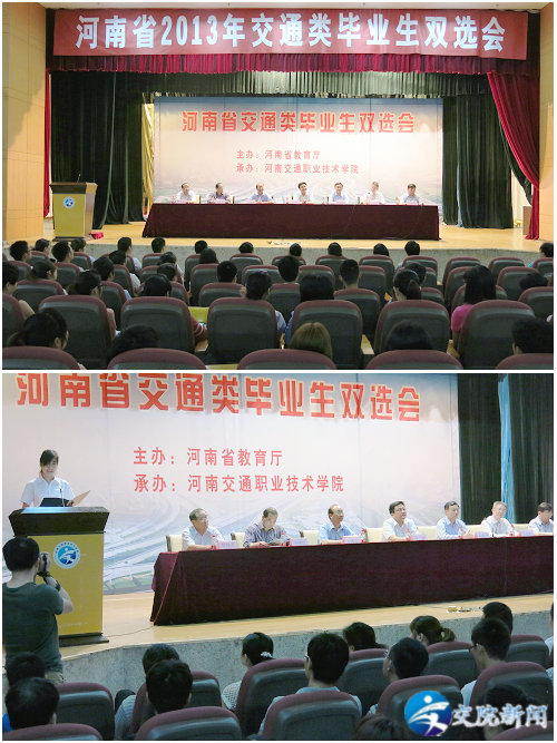 5月25日上午,河南省2013年交通类毕业生就业双选会在我院航海路校区举行,教育厅学生处副处长吴建中,学院领导徐强、孙建立、贺绍华、解福泉及企业代表和学生代表出席了开幕式,开幕式由贺绍华副院长主持。
