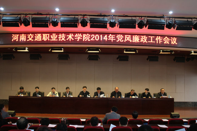 4月10日下午,学院在新校区图书馆报告厅召开2014年党风廉政建设工作会议。会议由李亚杰院长主持,院领导、机关全体人员、各院(系部)正科级以上干部、正高级职称教师参加了会议。