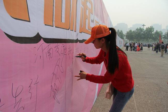 活动现场展出了大量的包括各种各样的交通违规违法事故照片在内的交通纪实图片,让参观者印象深刻,大家深有感触地表示要大力提倡文明出行,做好文明交通的宣传工作。在“文明出行,从我做起”的万人签名墙上,学院志愿者郑重地签下自己的名字,代表学院向全社会做出了庄严的承诺。