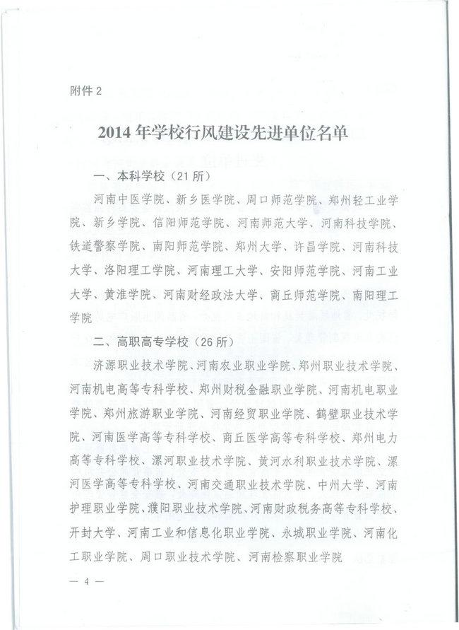近日,河南省纠正行业不正之风领导小组下发文件表彰2014年全省政风行风专项评议先进单位,学院被评为“2014年河南省学校行风建设先进单位”。这是学院自2011年以来连续5次获此殊荣。