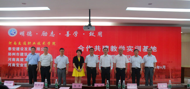 6月19日,学院与泰宏建设发展有限公司、郑州市建筑设计院、河南高建工程管理有限公司、河南宏业造价咨询有限公司四家单位合作共建教学实训基地签字授牌仪式在学院新校区圆形报告厅举行。院长李强,党委副书记张浩,副院长贺绍华,院长助理解福泉、张瑞春,泰宏建设发展有限公司总经理宋光明,郑州建筑设计院院长郑学田,河南高建工程管理有限公司董事长张建平,弘业国际集团总裁助理向玲出席了签约仪式。仪式由副院长夏连学主持。