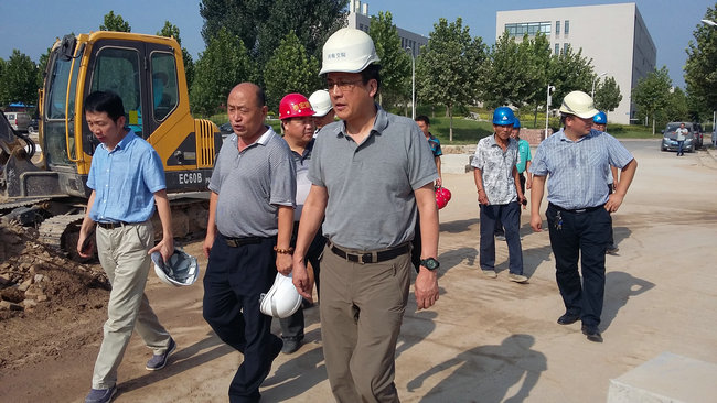 实地查看结束后,徐书记对新校区二期工程建设提出了三点要求:一是要确保工程建设质量。新校区二期工程先期开工建设的十个单体目前已经进入收尾攻坚阶段,要切实强化质量意识,工程越接近尾声越能体现一个单位的组织、管理和建设水平。徐书记要求新校区建设指挥部、监理和施工单位要更加细致地组织和计划好每个环节和重点部位的施工组织方案,确保工程建设质量。二是要加强施工管理。目前省会郑州正在加大扬尘治理,做为省会城市的一员,有义务有责任做好这项工作。新校区建设指挥部、监理和施工单位要认真按照相关工程建设管理部门的要求抓好施工现场的管理,为扬尘治理工作做出积极的贡献。三是要确保施工安全。时值仲夏,天气持续高温,工程建设后期交叉作业,新校区建设指挥部、监理和施工单位要强化安全意识,切实做好人员的防暑降温工作,切实加强施工组织的计划管理,杜绝安全隐患,确保施工安全。