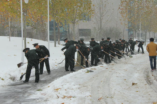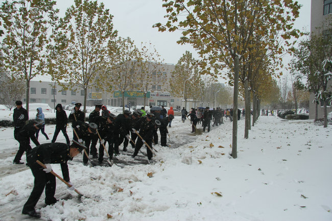 经过三个多小时的团结奋战,这支特殊的扫雪队伍为新校区师生们扫出一条条“绿色通道”,使大家在这严寒中感受到了别样的温暖。