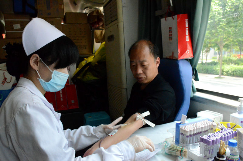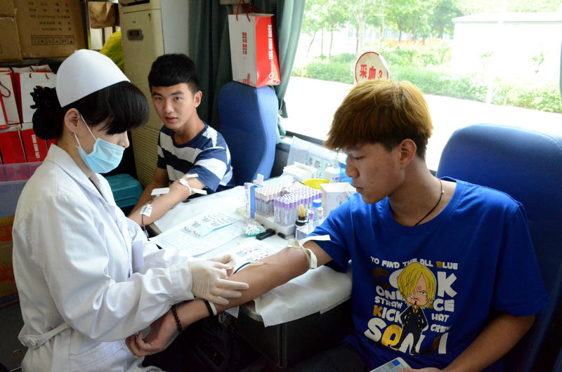 5月11日,在学院一期食堂前,一辆无偿献血车被学生们团团围住。由河南省红十字血液中心与学院团委、工会、学工处联合发起的无偿献血活动吸引了很多老师和同学前来献血。