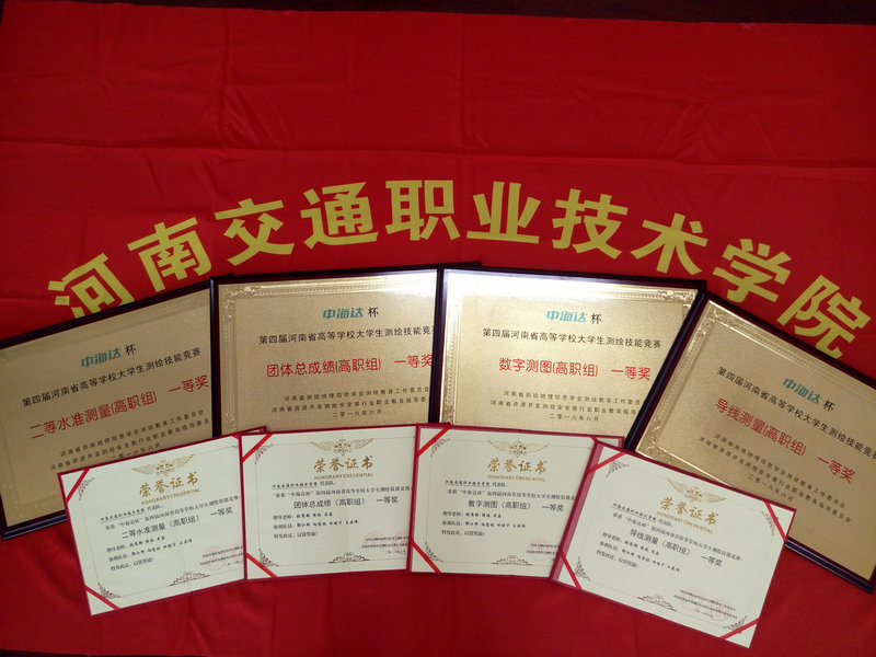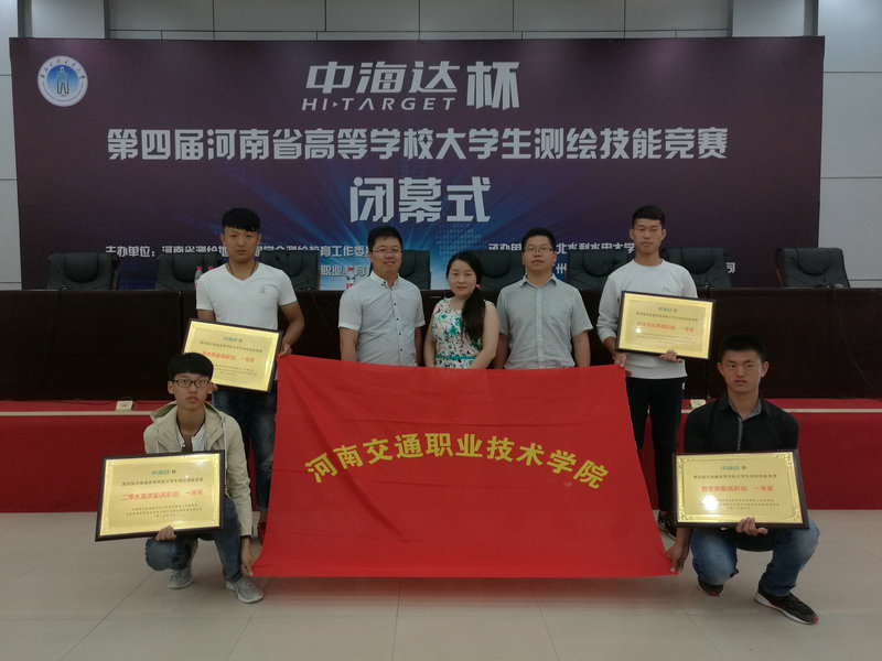 6月5日,“中海达杯”第四届河南省高等学校大学生测绘技能竞赛在华北水利水电大学圆满举办。公路学院派出了由张恩朝、侯瑞、吴晶、支刚四位老师和郭江辉、向宝林、田晓宁、王亚伟四名学生组成的代表队参战,与全省18个本、专科院校同台竞技,激烈角逐,一举斩获了高职组二等水准测量、一级导线测量、数字测图三个单项一等奖和团体总成绩一等奖,拔得本次大赛的头筹,实现了学院在测绘技能类竞赛的首次大满贯。