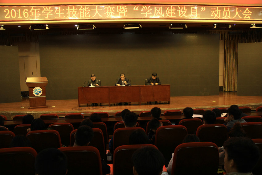 11月9日下午,由教务处、学生工作处联合组织的学院2016年学生技能大赛暨“学风建设月”活动动员大会在新校区图文中心二楼报告厅召开。副院长夏连学、贺绍华,工会主席张瑞春,学生工作处、教务处、团委,各(院)系领导、学管、辅导员、学生代表参加了会议,会议由张瑞春主持。
